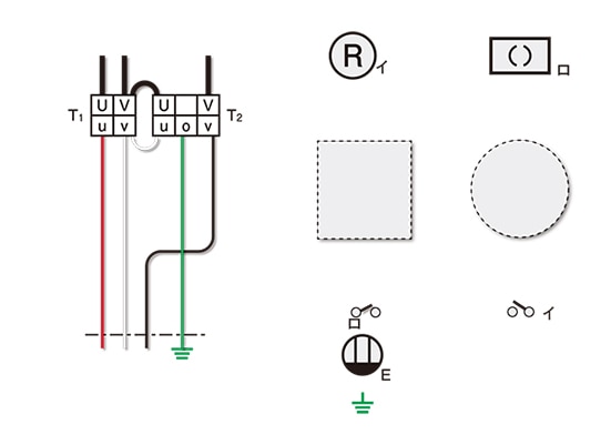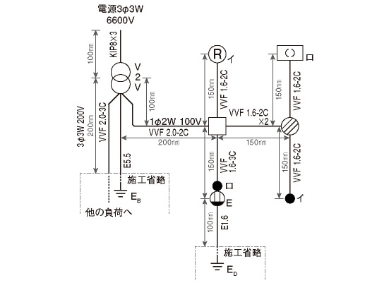 ・変圧器二次側の単相負荷回路は変圧器(T2)のo-v端子に結線する