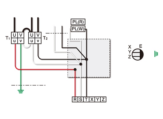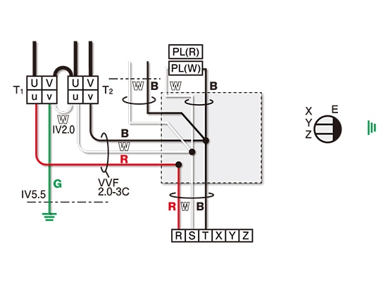 ・変圧器の二次側の配線はR相:赤色、S相:白色、T相:黒色を使用する