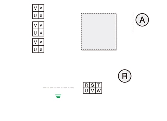 ・変圧器の二次側の配線はわたり線を除き、R相:赤色、S相:白色、T相:黒色を使用する
