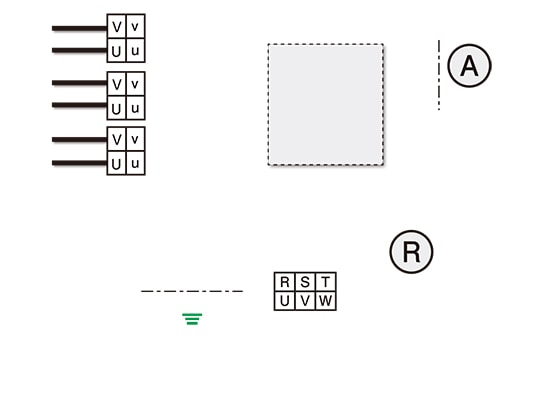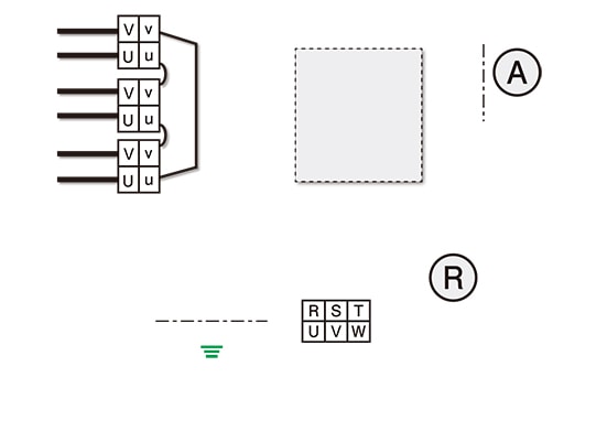 ・運転表示灯は開閉器負荷側のU相とV相間に接続すること