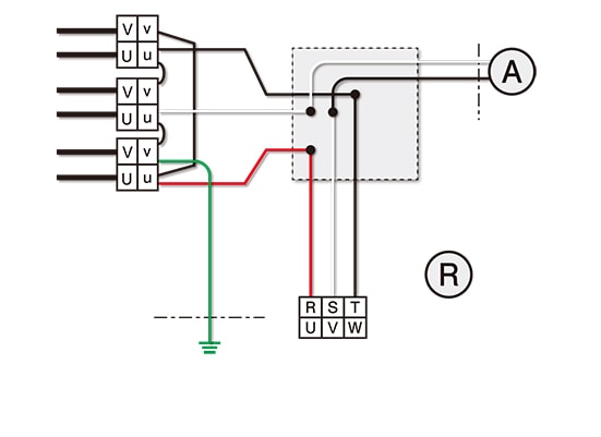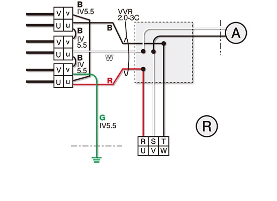 ・開閉器の負荷側から電動機に至る配線はU相:赤色、V相:白色、W相:黒色を使用する