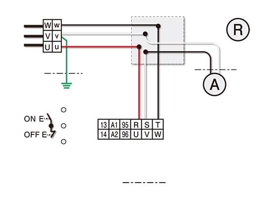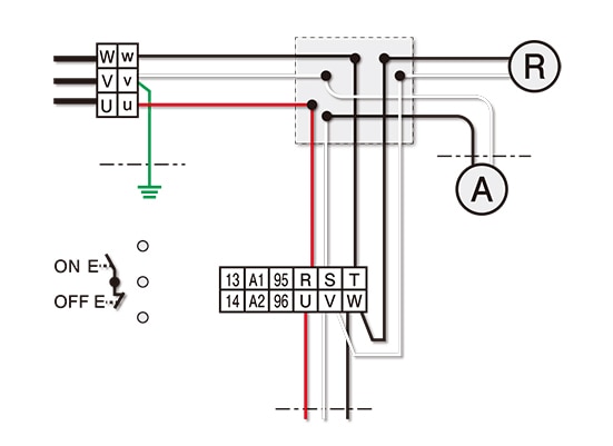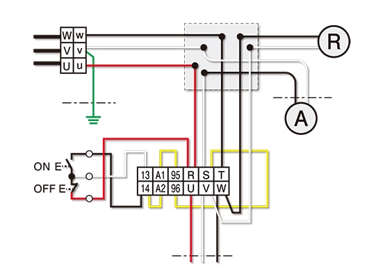 ・電磁開閉器の端子相互間の配線に使用する電線は黄色を使用する