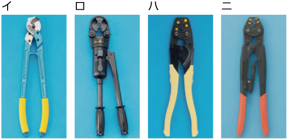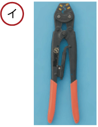 裸圧着端子に圧着接続には、[イ]の圧着工具を使用します。