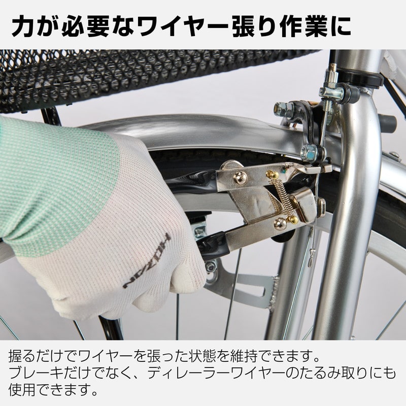 ブレーキ、ディレーラーなどのインナーワイヤー取り付け時の引っ張り調節用プライヤーです。