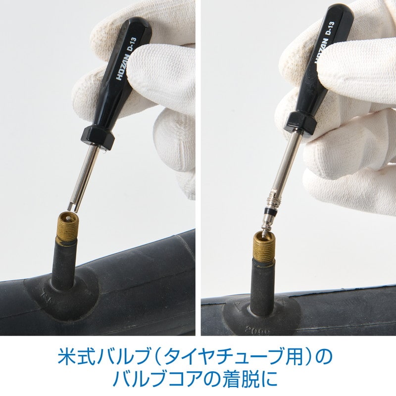 米式バルブ(タイヤチューブ用)のバルブコアの着脱に便利な専用ドライバー。
