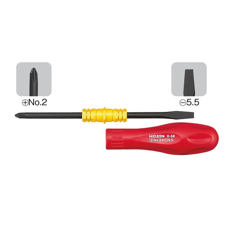 1本で2サイズ使える両頭差替ドライバー。