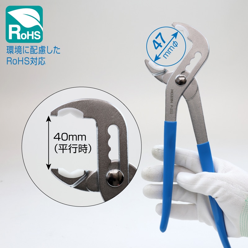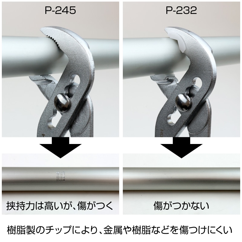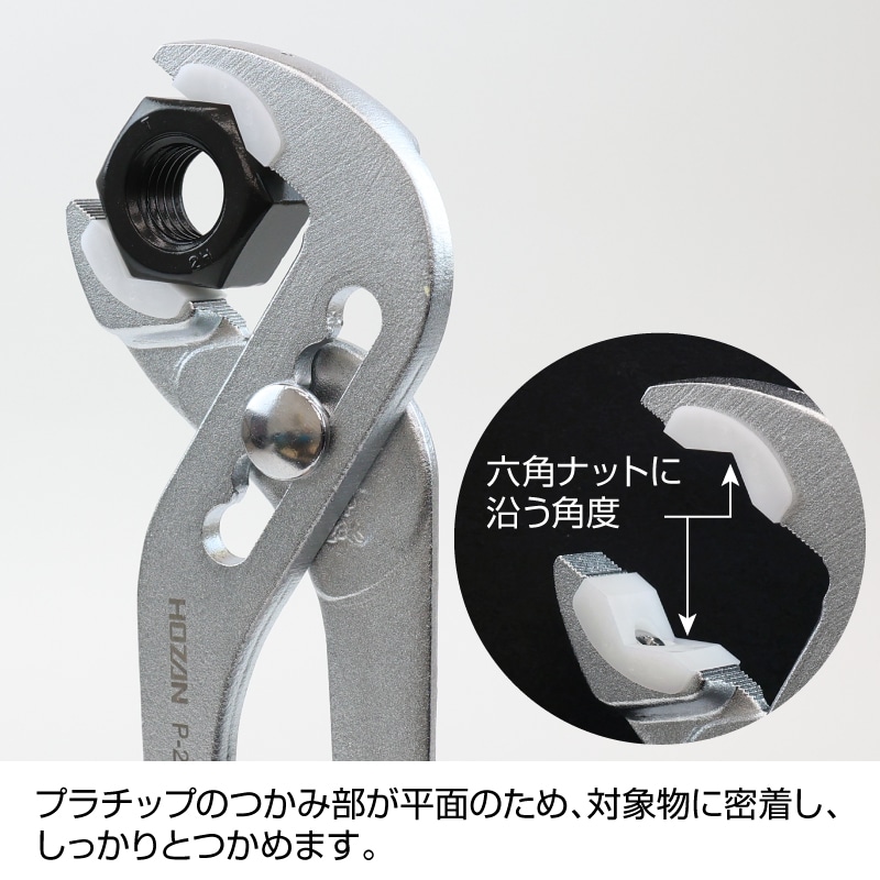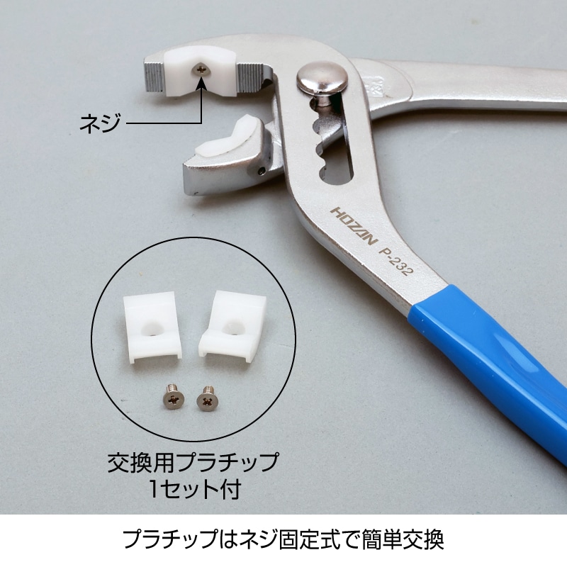 対象物に傷をつけにくいプラチップ付ウォーターポンププライヤー