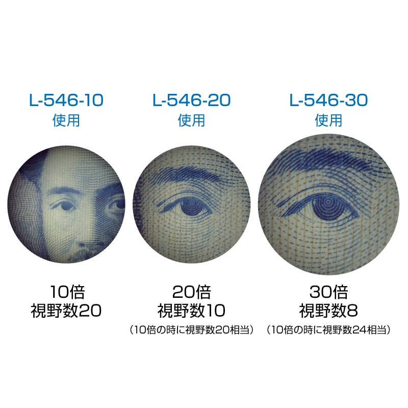 ※実際の大きさ(1倍)を接眼レンズで拡大した場合の視野の直径(mm)を表します。