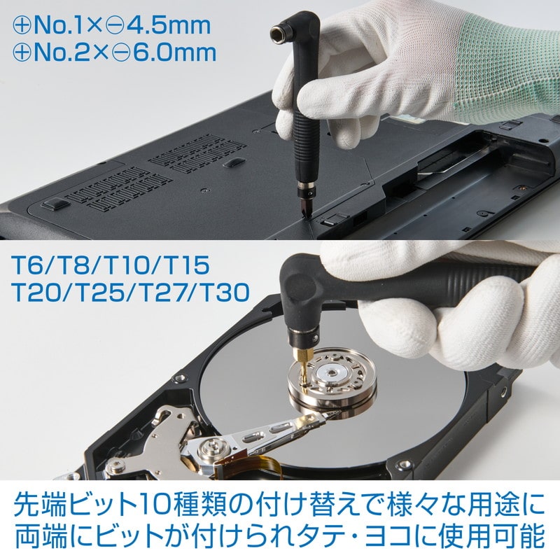 T6 / T8 / T10 / T15 / T20 / T25 / T27 / T30 / ⊕No.2×⊖6.0mm / ⊕No.1×⊖4.5mm