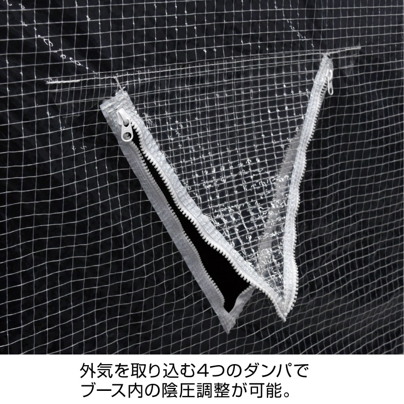外気を取り込む4つのダンパでブース内の陰圧調整が可能