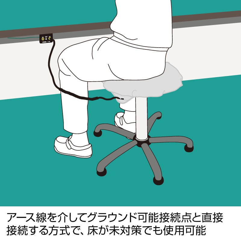 別売のアース線を使ってグラウンドに接続するタイプで、床が未対策でも接地経路を確保できます。