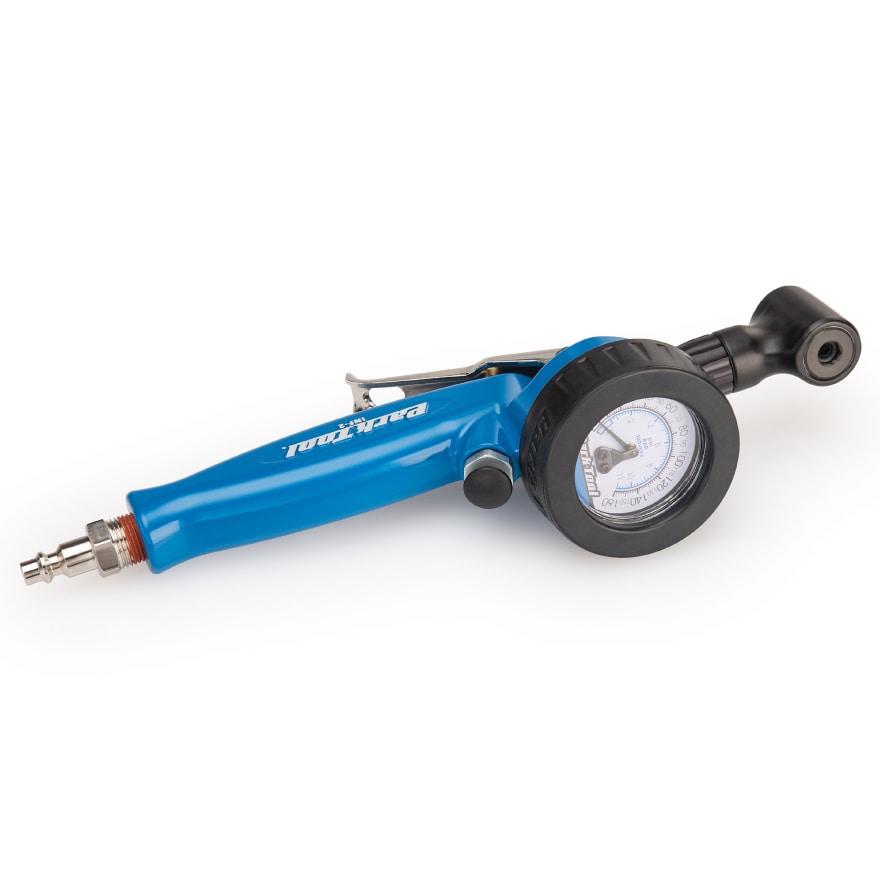 自転車用タイヤの空気入れ、空気圧の調整が素早く、簡単に行うことが出来るインフレーターヘッド。