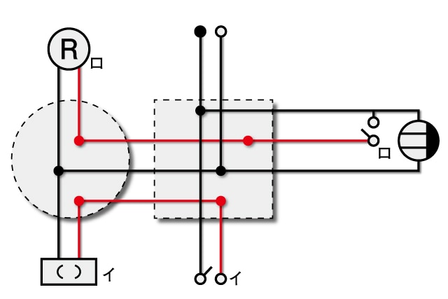 2.非接地側はコンセントとスイッチにつなぐ → 黒線