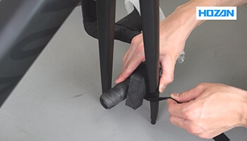 ウレタンに取り付けられた面ファスナーには裏表があります。光沢がない方が内側にくるように巻き付けましょう。