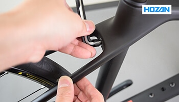 下側のハンドルをフォークの間に入れ、ステムとハンドルを固定しましょう