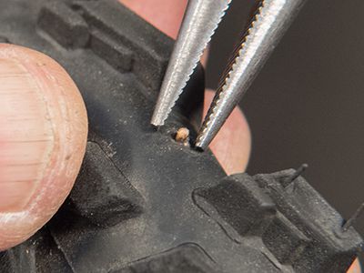 タイヤの中に残っているパンクの原因となった異物などを確認し取り除きます。